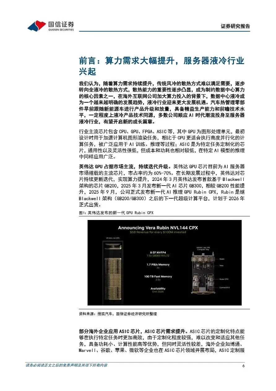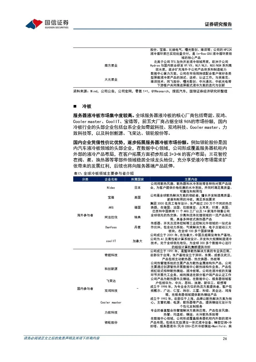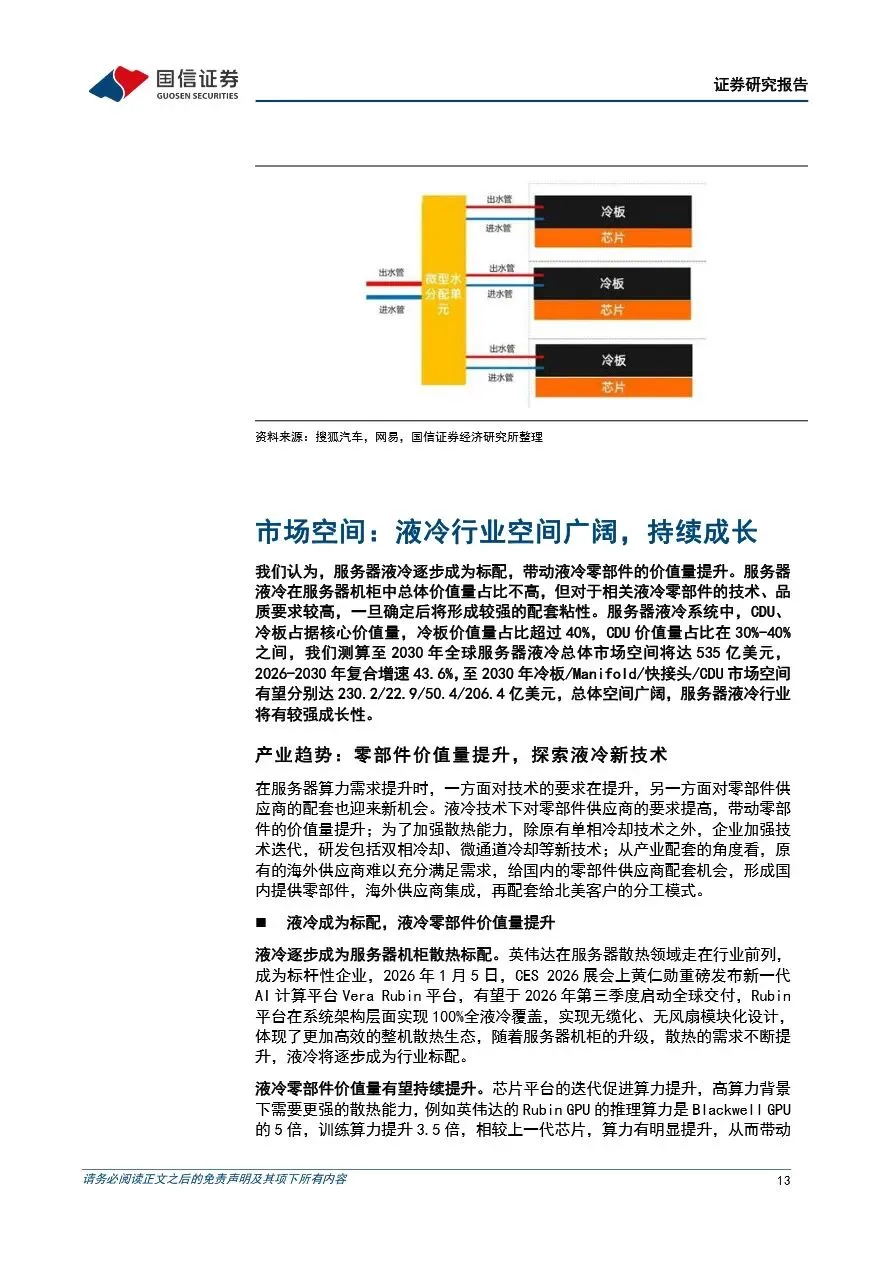 汽车+AI前瞻系列之-服务器液冷专题:服务器算力提升催化液冷需求,供应商迎来国产替代新机遇