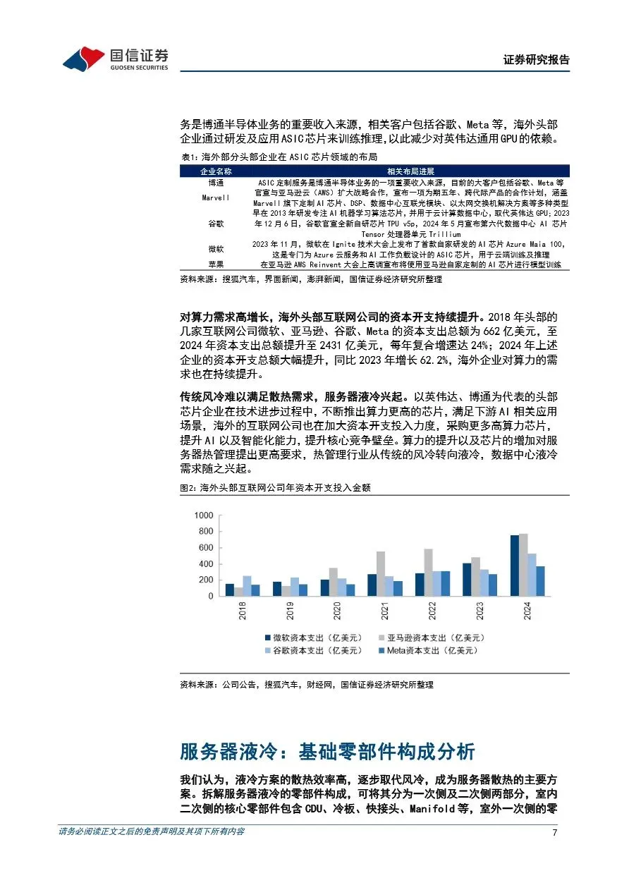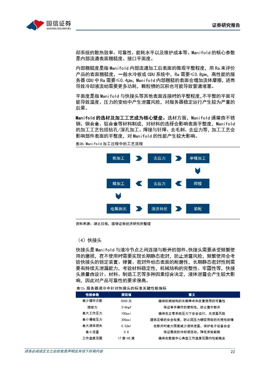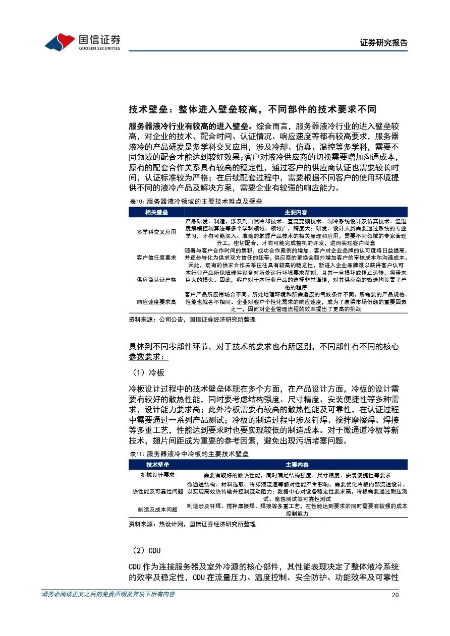 随着海外互联网公司对算力需求的持续提升,传统风冷散热方式已难以满足高密度数据中心的需求,服务器液冷技术因此迎来快速发展期。液冷方案通过高效散热,逐步成为服务器散热的主流选择,尤其是在AI服务器和高性能计算领域,其重要性日益凸显。服务器液冷系统涉及多个核心零部件,包括CDU、冷板、Manifold和快接头等,这些零部件的技术门槛较高,国内企业凭借性价比优势和快速响应能力,正逐步打破海外企业的垄断格局,实现国产替代。