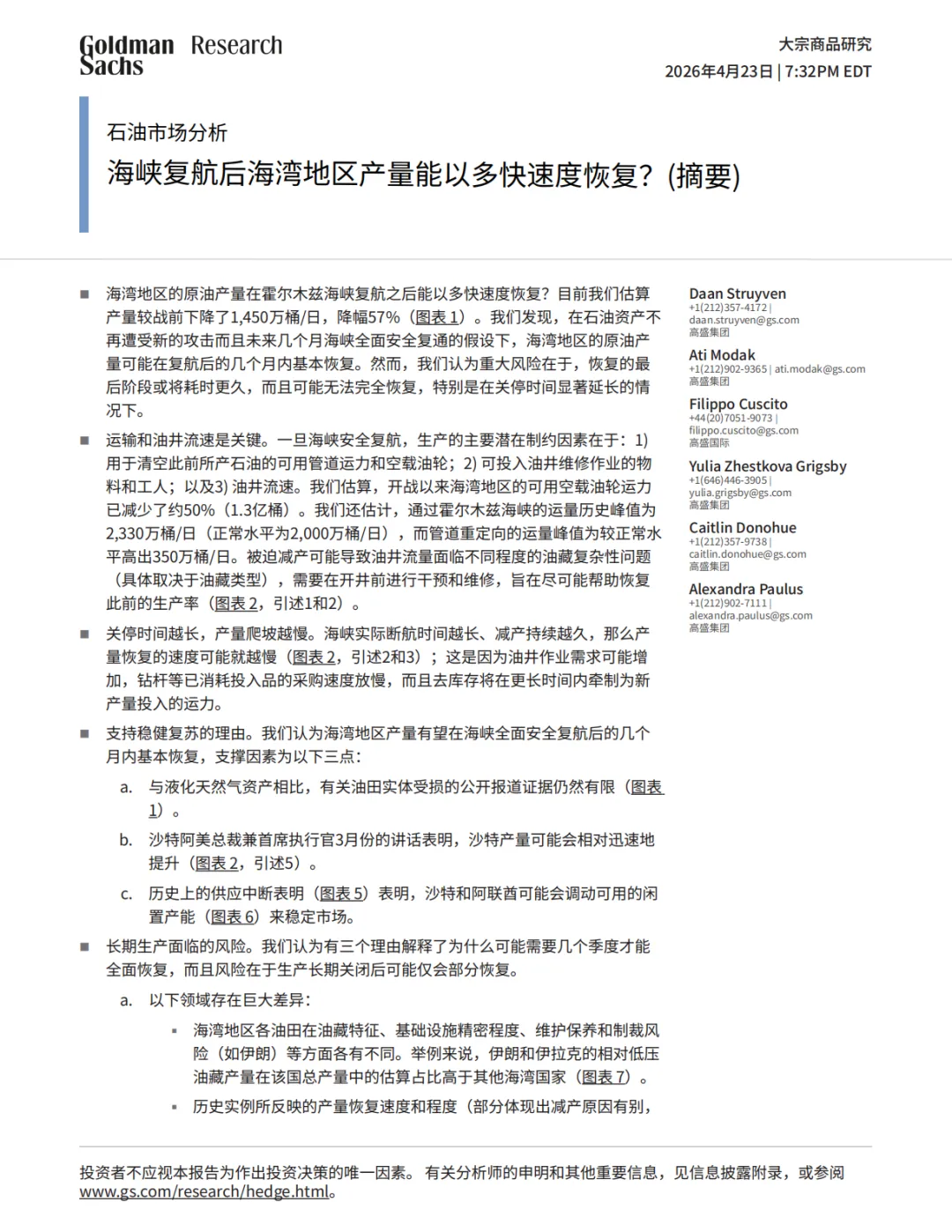 『研报』石油市场分析:海峡复航后海湾地区产量能以多快速度恢复?(摘要)