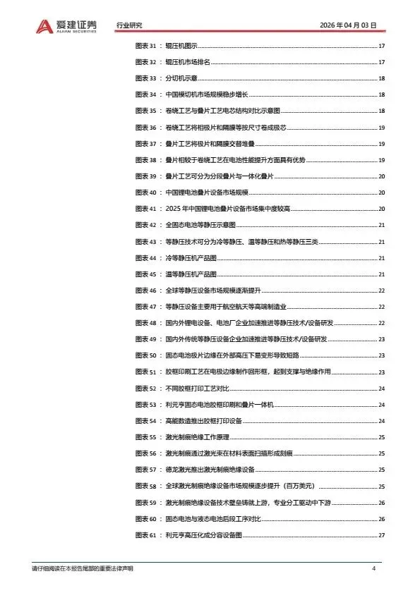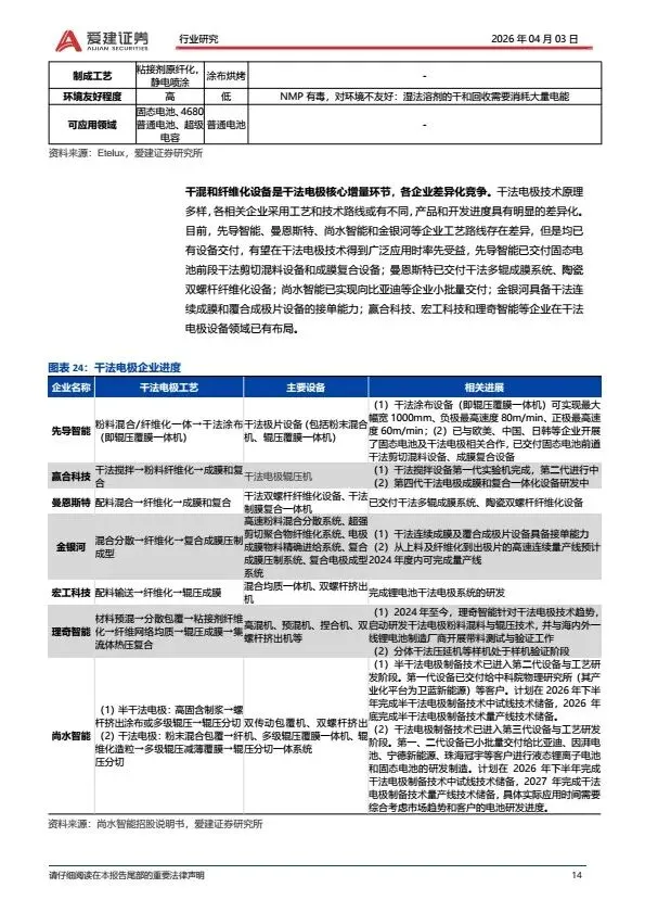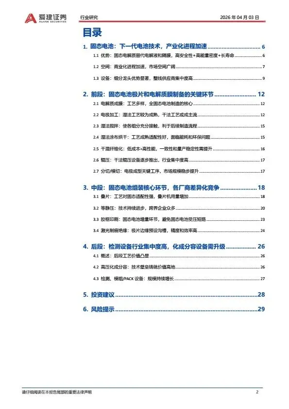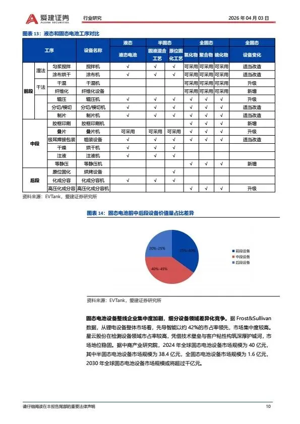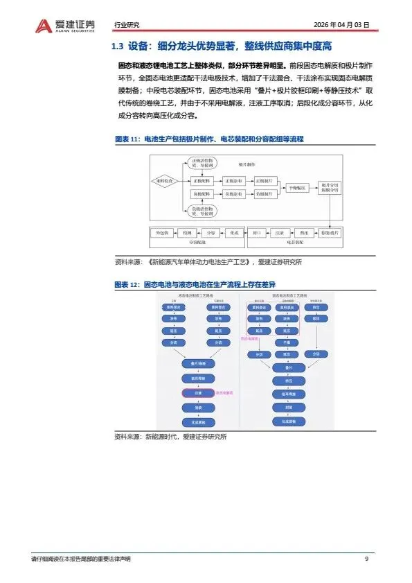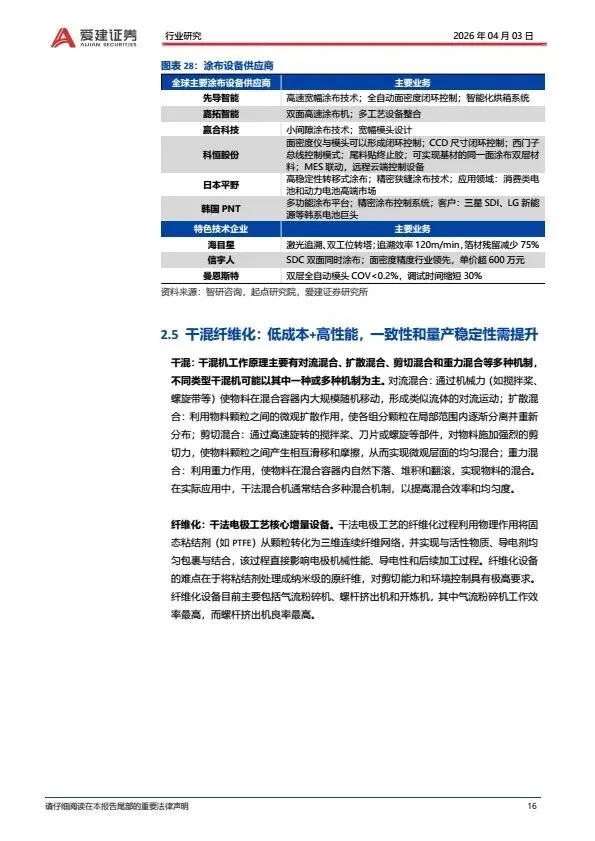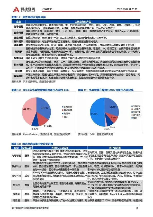 摘要:固态电池技术迭代加速,推动电池生产工艺全面革新,为锂电设备行业带来全新增量机遇。本文系统梳理产业逻辑:详解前段干法电极、中段叠片+等静压+胶框印刷、后段高压化成分容三大环节的技术变革,分析各环节的技术壁垒与产业化进展,同时梳理先导智能、曼恩斯特、杭可科技等头部企业的布局进展,指出干法电极设备同时适配液态锂电工艺升级需求,为锂电行业投资者提供产业参考。