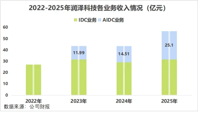 2025年,润泽科技的AIDC业务实现营收25.1亿元,占比达到44.24%,同比增长72.97%。