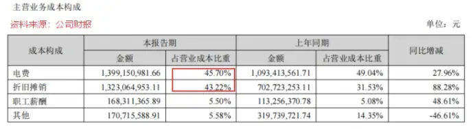 2025年,润泽科技电费支出和折旧摊销分别占总成本的45.7%、43.22%。