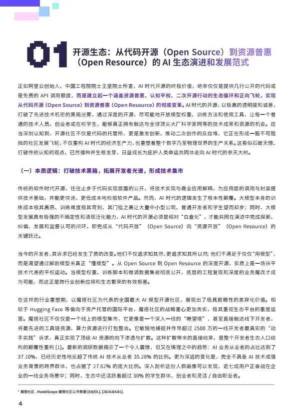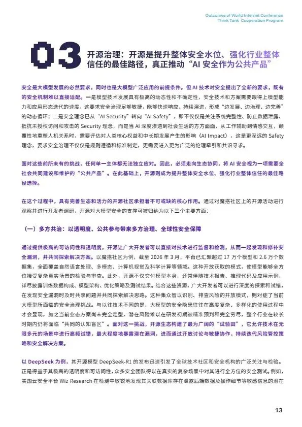 摘要:随着AI技术规模化落地,开源生态成为推动产业全球协同发展的核心引擎。本报告系统梳理产业逻辑:开源通过全球开发者协同,实现AI安全漏洞的共同排查与风险治理,将AI安全能力转化为普惠公共产品,同时打破技术黑盒,建立产业信任基础。报告结合魔搭社区、DeepSeek、OpenClaw等全球实践案例,剖析开源的认知平权、安全共建等核心价值,为AI行业从业者提供产业参考。