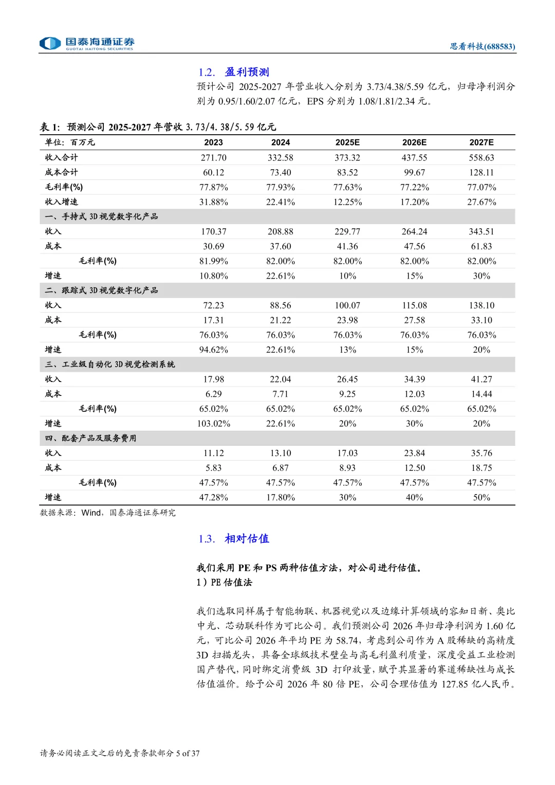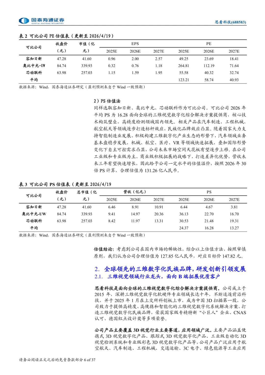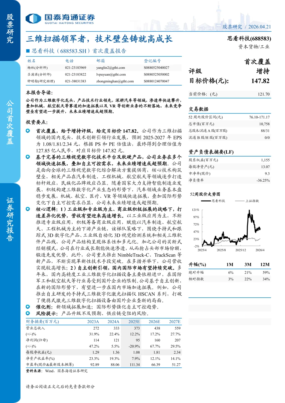 三维扫描这条赛道,市场现在盯的已经不只是“有没有需求”,而是谁能把技术壁垒真正变成规模化收入。按这份研报的判断,思看科技更像是已经从单点产品公司,往平台型三维数字化解决方案提供商走了。现在看它,不只是因为它是“中国3D扫描第一股”,更因为汽车基本盘稳着,机械、航空航天、医疗、VR这些增量场景开始接力,自主可控又把行业天花板往上抬了一截。