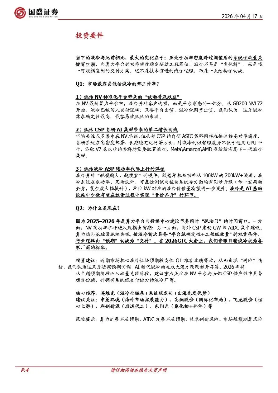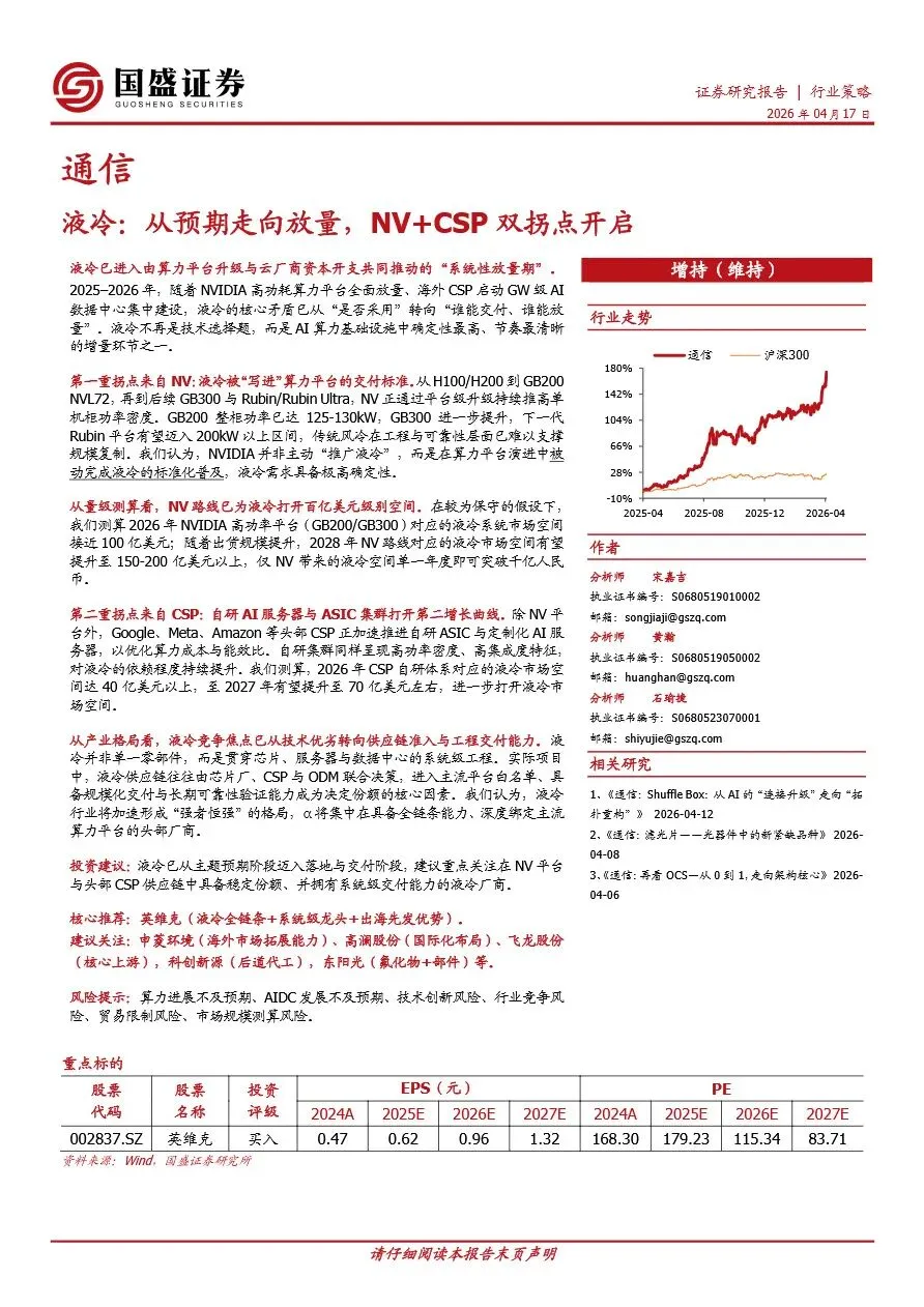 液冷:从预期走向放量,NV+CSP双拐点开启