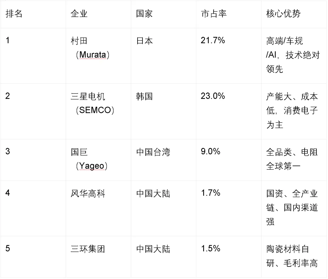 •垂直整合:从电子陶瓷粉→镍浆→MLCC/电阻/电感→模组全流程布局,成本比纯组装厂低15–20%。