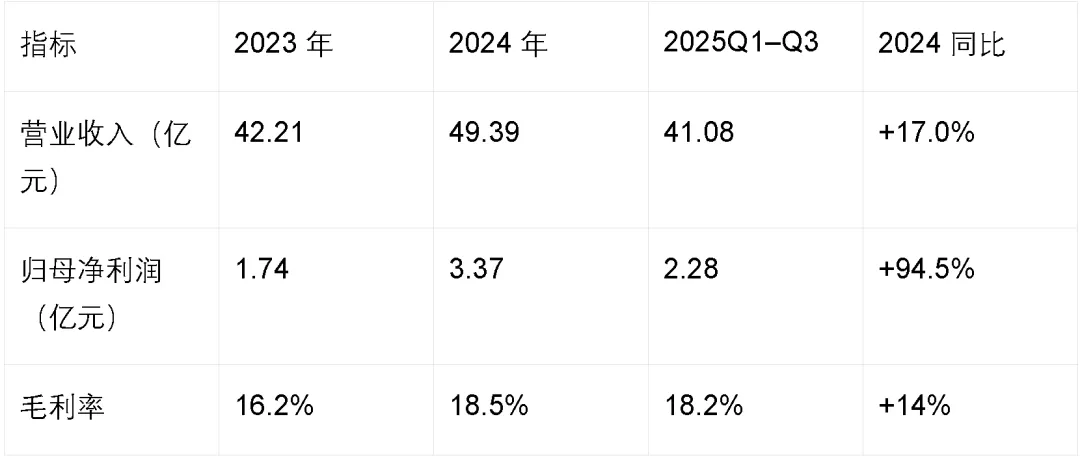•2024年:归母净利润3.37亿元(+94.5%),毛利率提升2.3pct至18.5%,受益于产品结构优化与成本控制。
