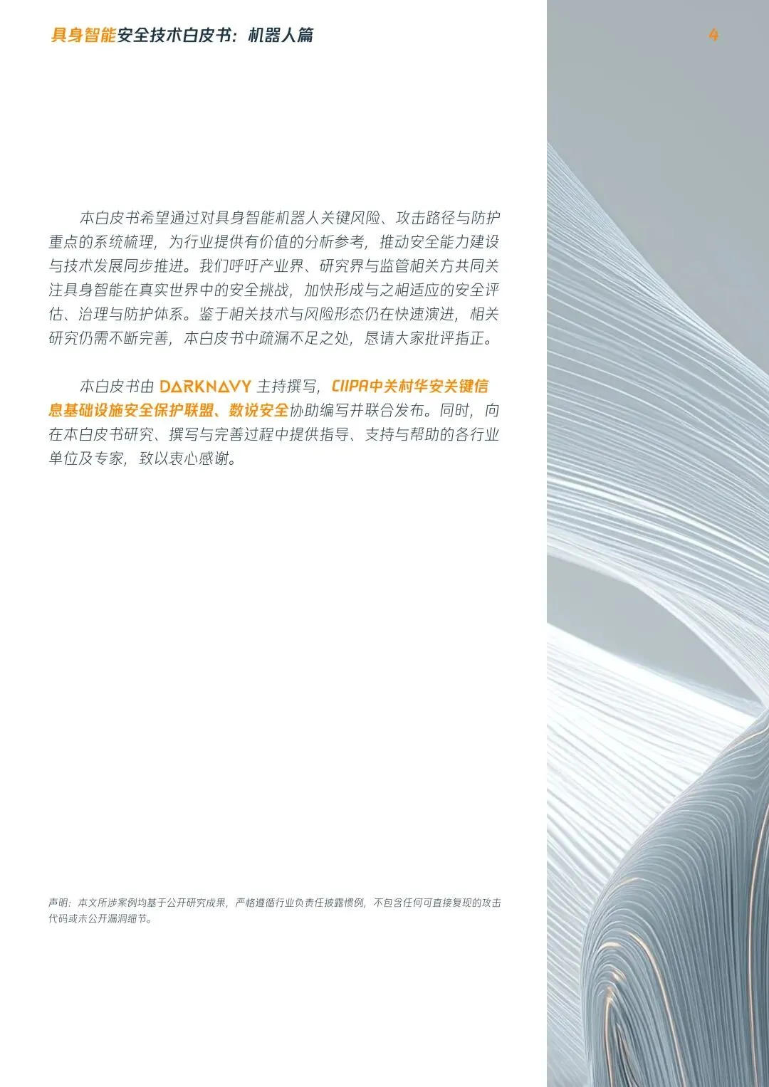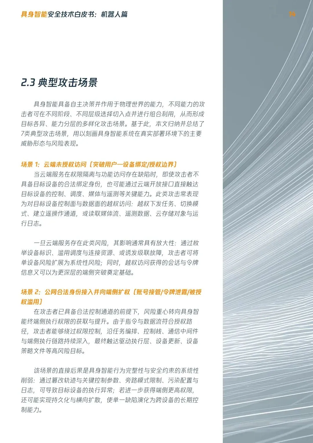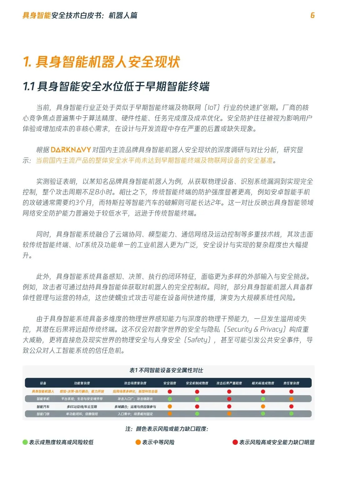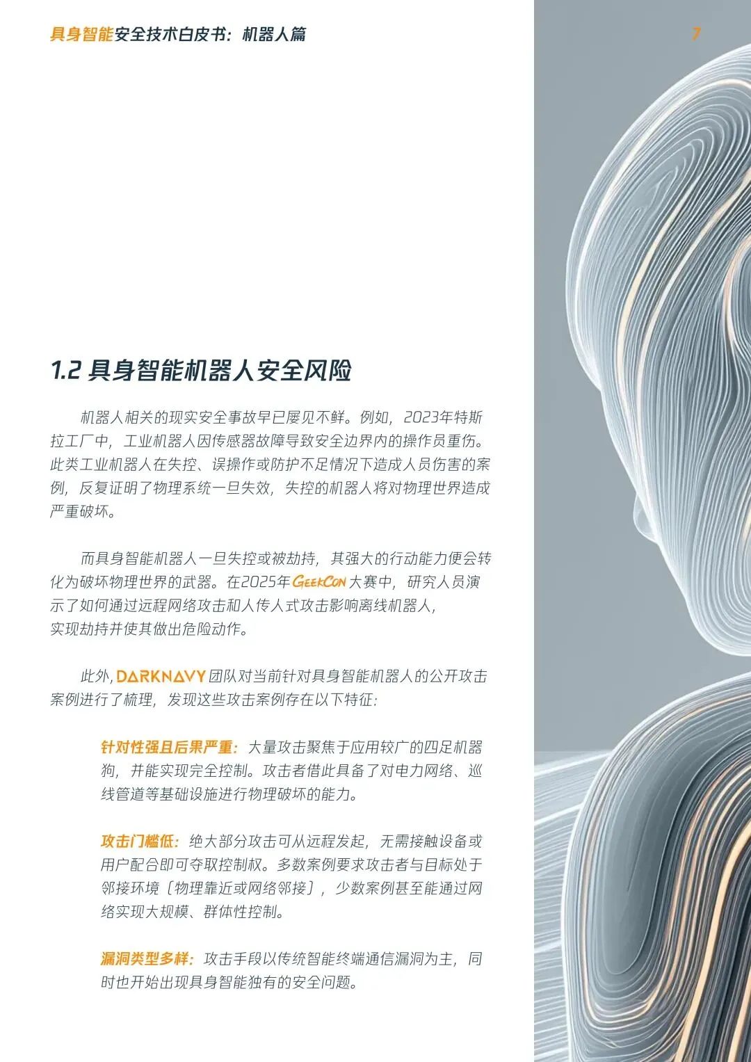 摘要:具身智能机器人进入规模化落地前夜,行业安全体系严重滞后,数字漏洞可直接转化为物理伤害,当前正处于高危安全真空期。本文系统梳理安全现状:提出平台/终端/设备三层安全架构,明确四大安全目标,构建五级安全影响分级,发布RoboSecTop10关键风险清单,覆盖全维度威胁,为行业从业者提供安全建设参考。