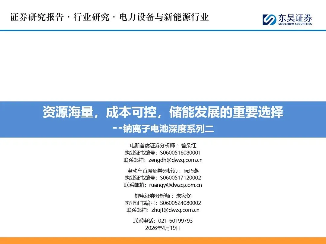 钠离子电池深度系列二:资源海量,成本可控,储能发展的重要选择量来源